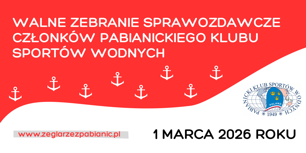 Zarząd Pabianickiego Klubu Sportów Wodnych informuje, że dnia 1 marca 2026 roku odbędzie się Walne Zebranie Sprawozdawcze Członków Pabianickiego Klubu Sportów Wodnych.